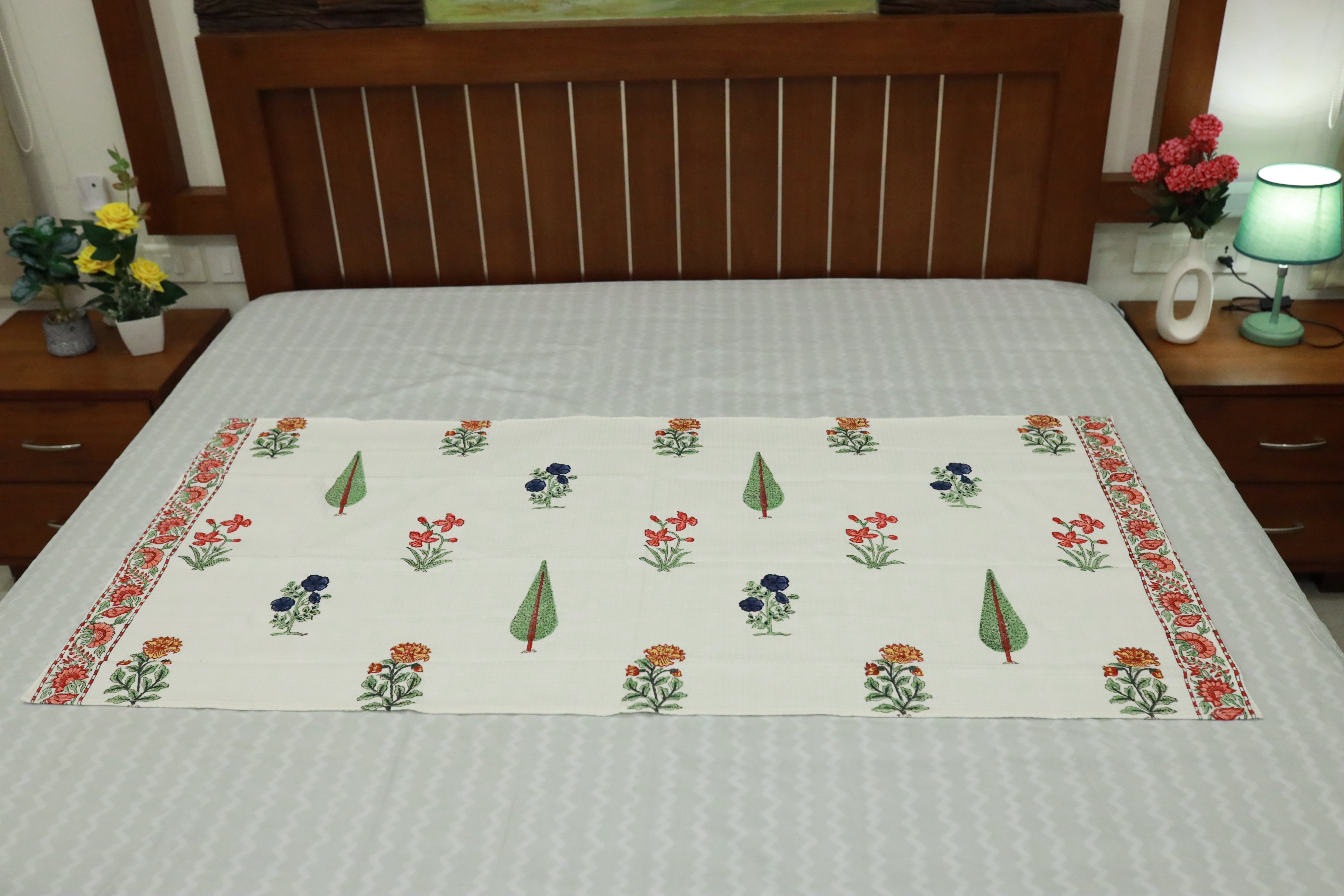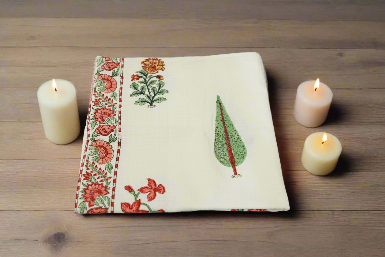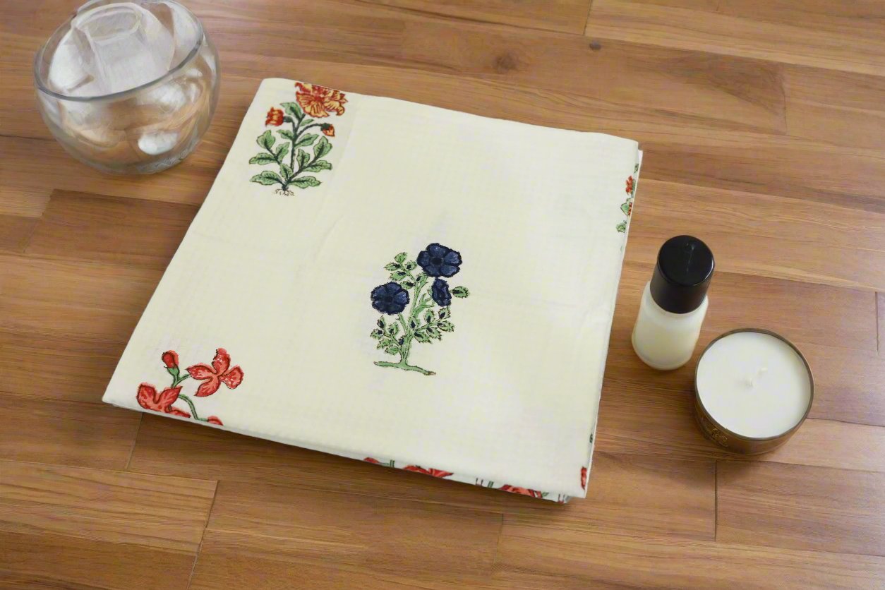 The traditional hand block printing process involves the use of vegetable, azo-free dyes, which may result in natural imperfections in the prints. Please note that the actual color of the product may slightly vary due to differences in screen resolution and light settings.